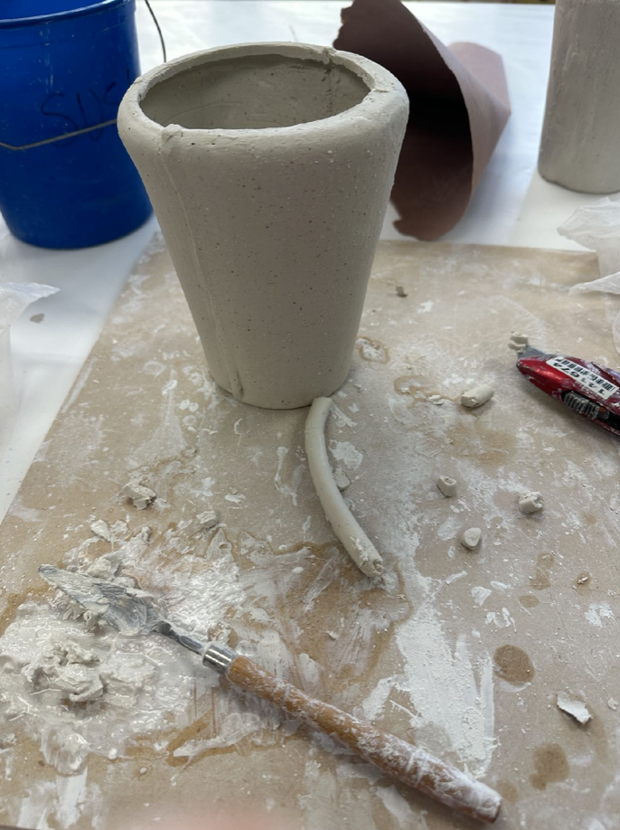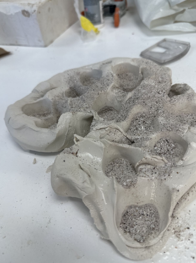 The lamp consists of a ceramic base and glass top, which can be switched out for a side plate or different color. The lamp base is made from ground oysters which were crushed into clay and fired. For a different restaurant one could use pizza oven ash, eggshells or bone meal.