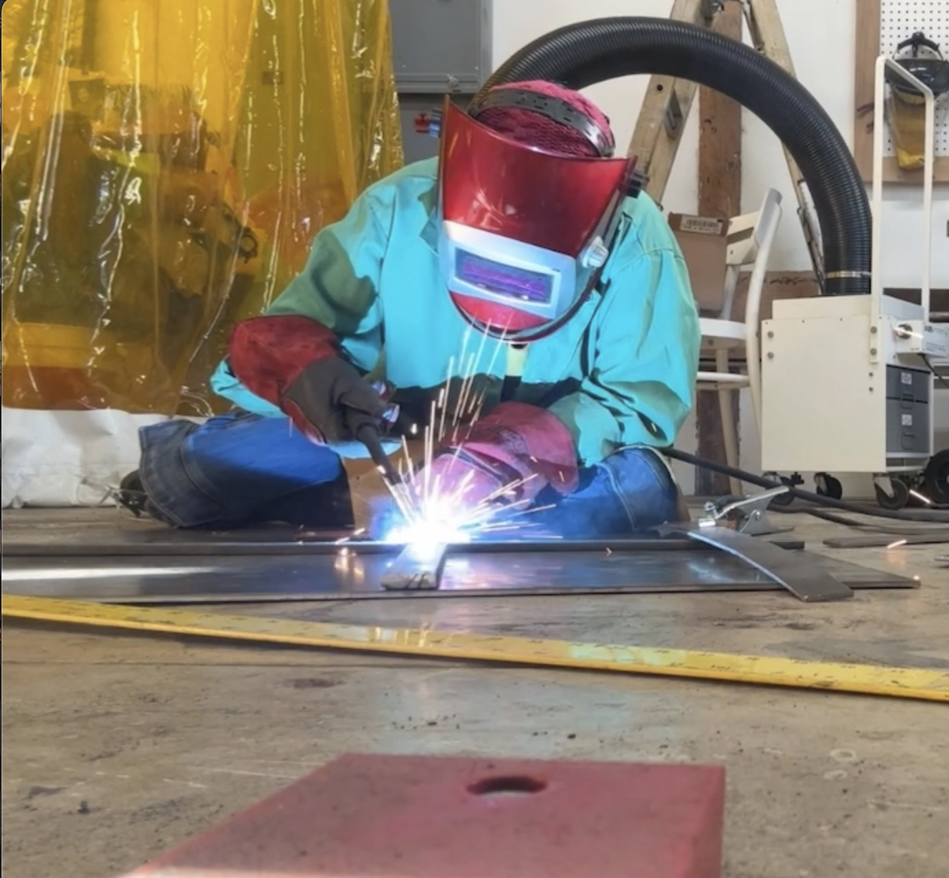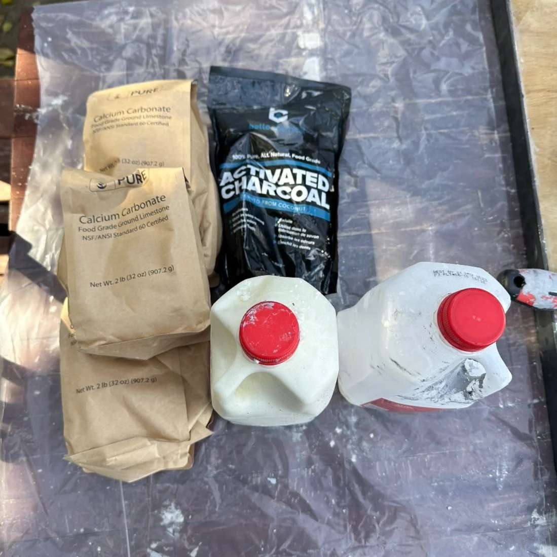 The tabletop uses spoiled milk to cure chalk into cement; a centuries old technique used for flooring in British Tudor Houses. Charcoal pigments the mix, creating a dark, contrasting background for the plates and lighting.